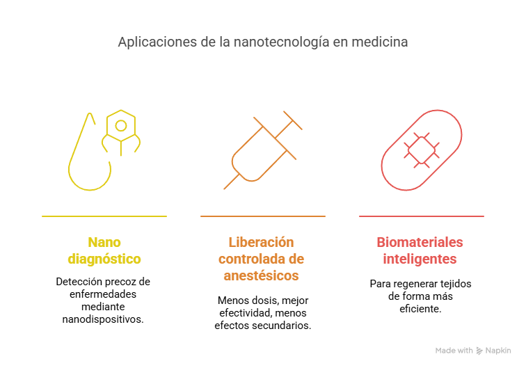 - Nano diagnóstico: detección precoz de enfermedades mediante nanodispositivos.